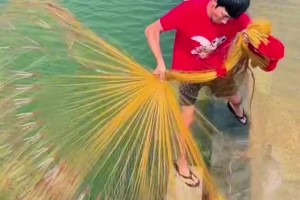 撒网界的"天花板"男子撒网如同孔雀开屏一般!